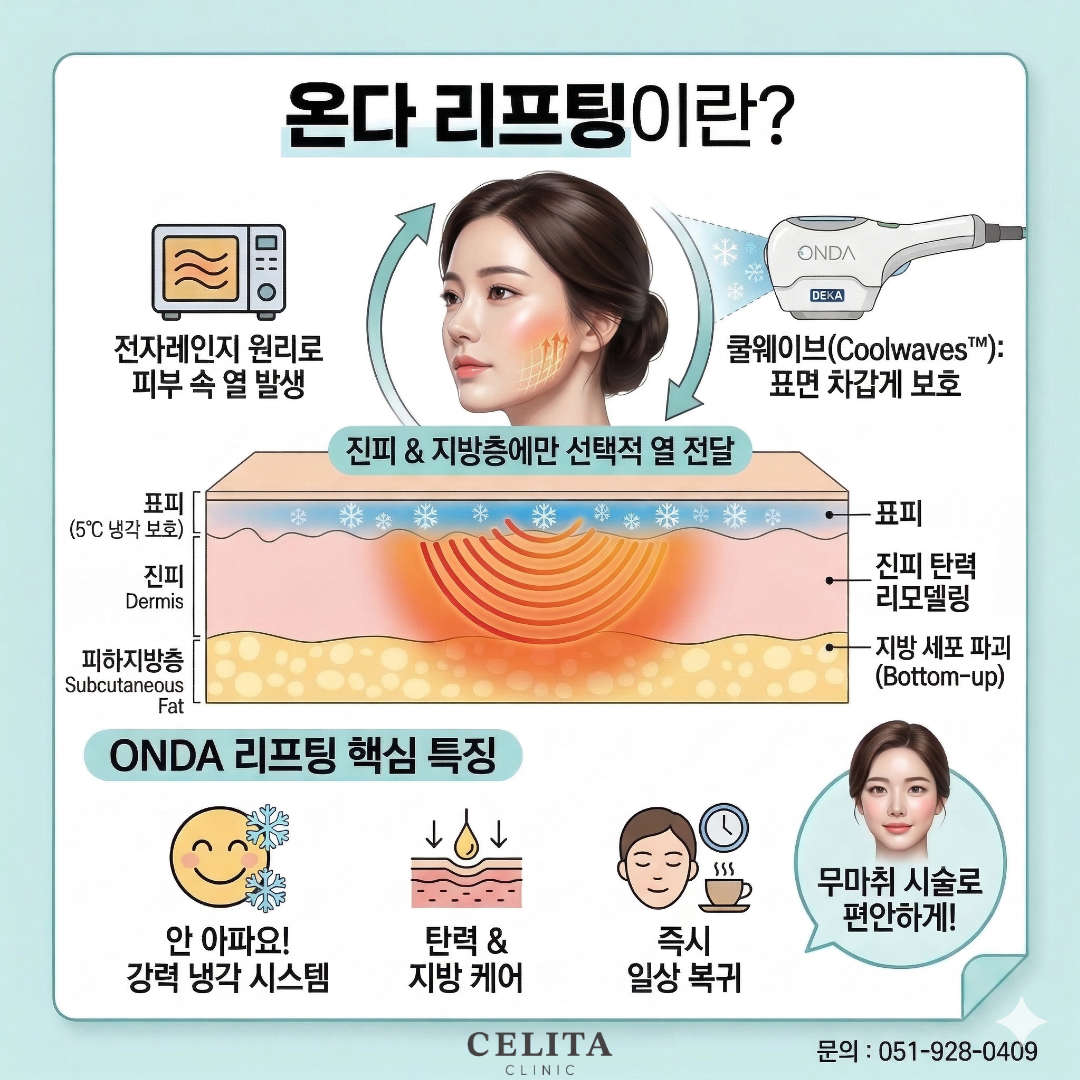 상담실에서 요즘 가장 많이 받는 질문 중 하나가 바로 "온다 리프팅이 뭔가요?" 입니다. 연예인이 약속 당일에도 받고 간다고 해서인지, SNS에서 화제가 되고 있는데요. 오늘은 화려한 마케팅 뒤에 숨겨진 의학적 원리를 냉정하게, 그리고 솔직하게 정리해 드리겠습니다.